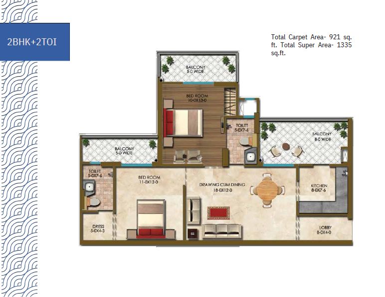 1335 Sq.ft. | 2 BHK