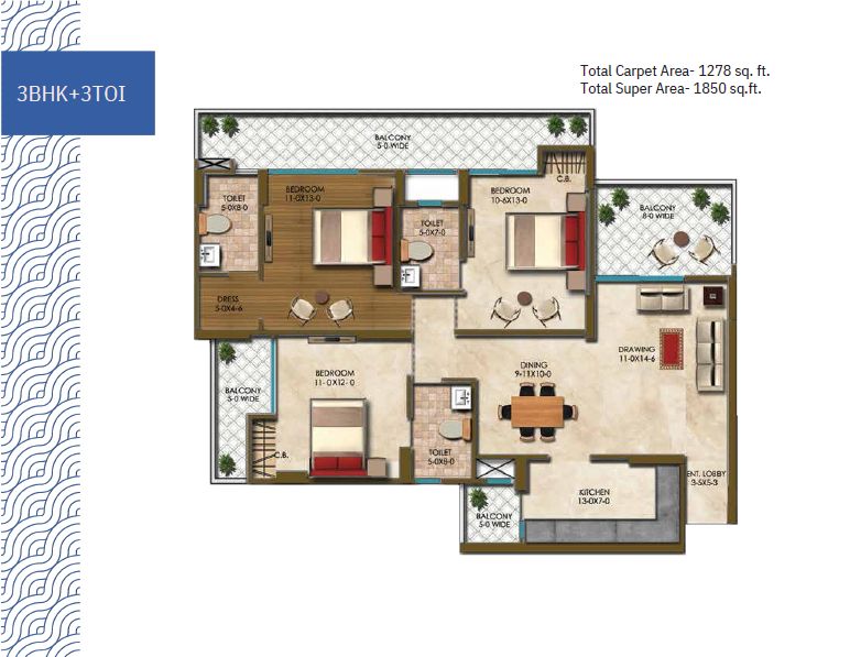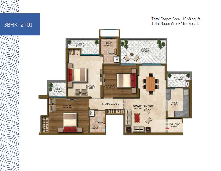 1550 Sq.ft. | 3 BHK
